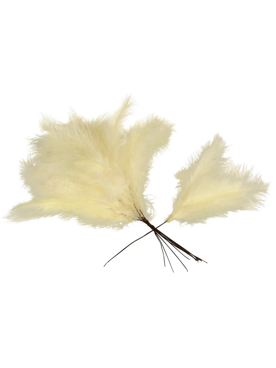 Dessa fluffiga fjädrar på ståltråd är enkla att dekorera med i både påskris och blomarrangemang. Varje fjädervippa är som en liten bukett av fjädrar vilket ger en fin effekt. 12 st10 cm Fjädrarna är tillvaratagna från fåglar från livsmedelstillverkning.