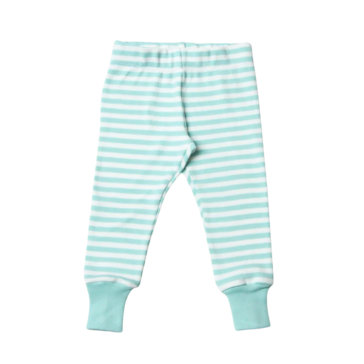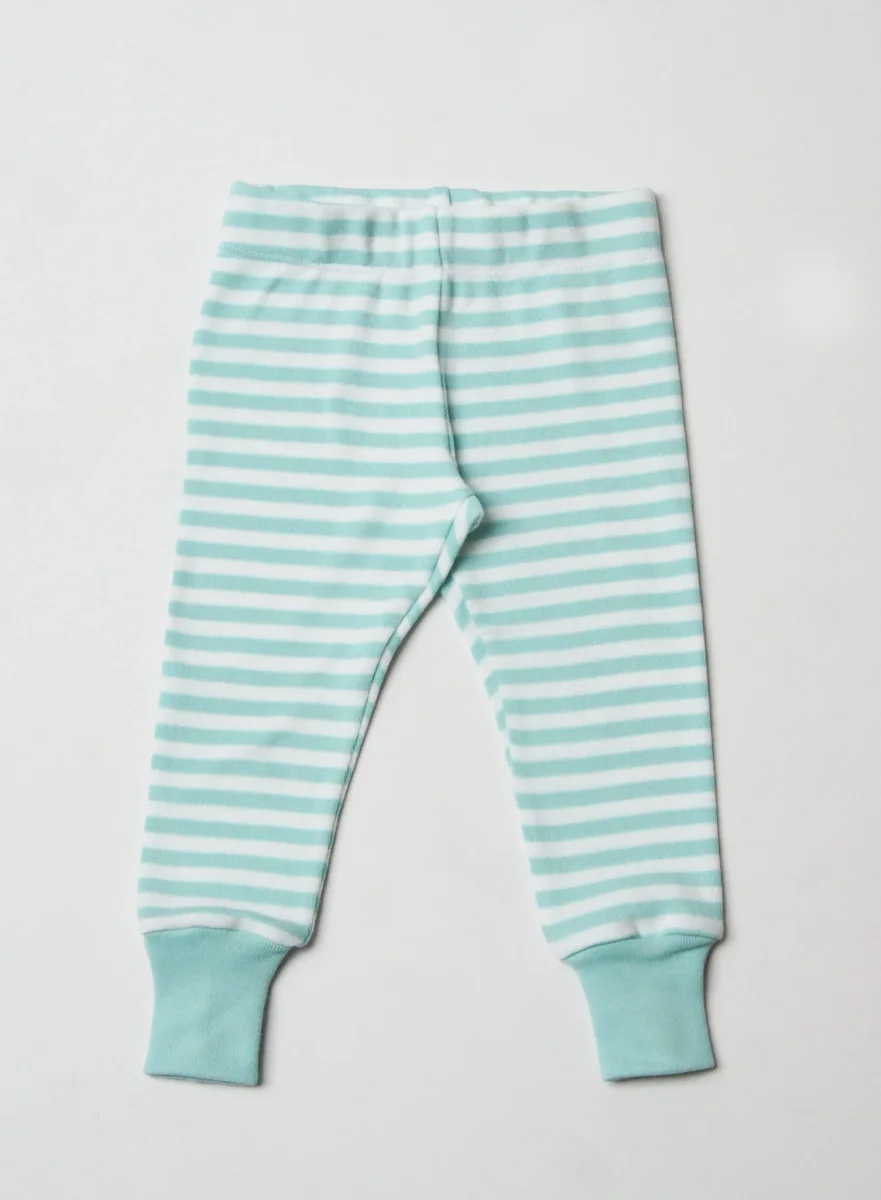 - Byxorna är randiga i mintgrönt och vitt.