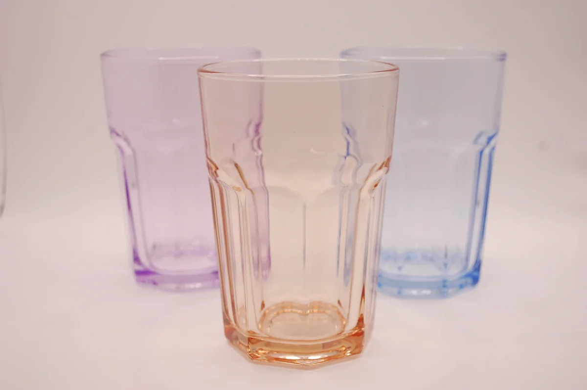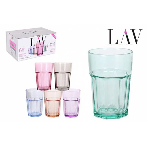 Dessa stilfulla dricksglas kommer i ett set om 6 stycken och har en kapacitet på 365 ml vardera. De är tillverkade av högkvalitativt glas och har en vacker, mångfärgad design som tillför en färgstark touch till alla dukningar. Med en höjd på 121 mm är de perfekta för servering av vatten, juice, läsk eller andra drycker. Glasen är dessutom diskmaskinssäkra, vilket gör dem både praktiska och enkla att rengöra.