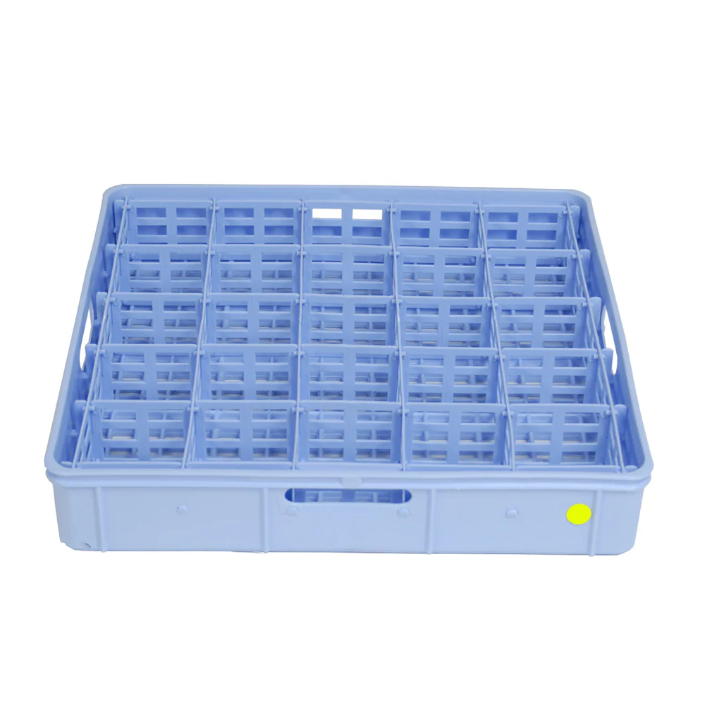 Fackinsats för glas, 46×46 cm. Av formsprutad PP-plast. Vid diskning placeras korgen i en 50 cm korg.