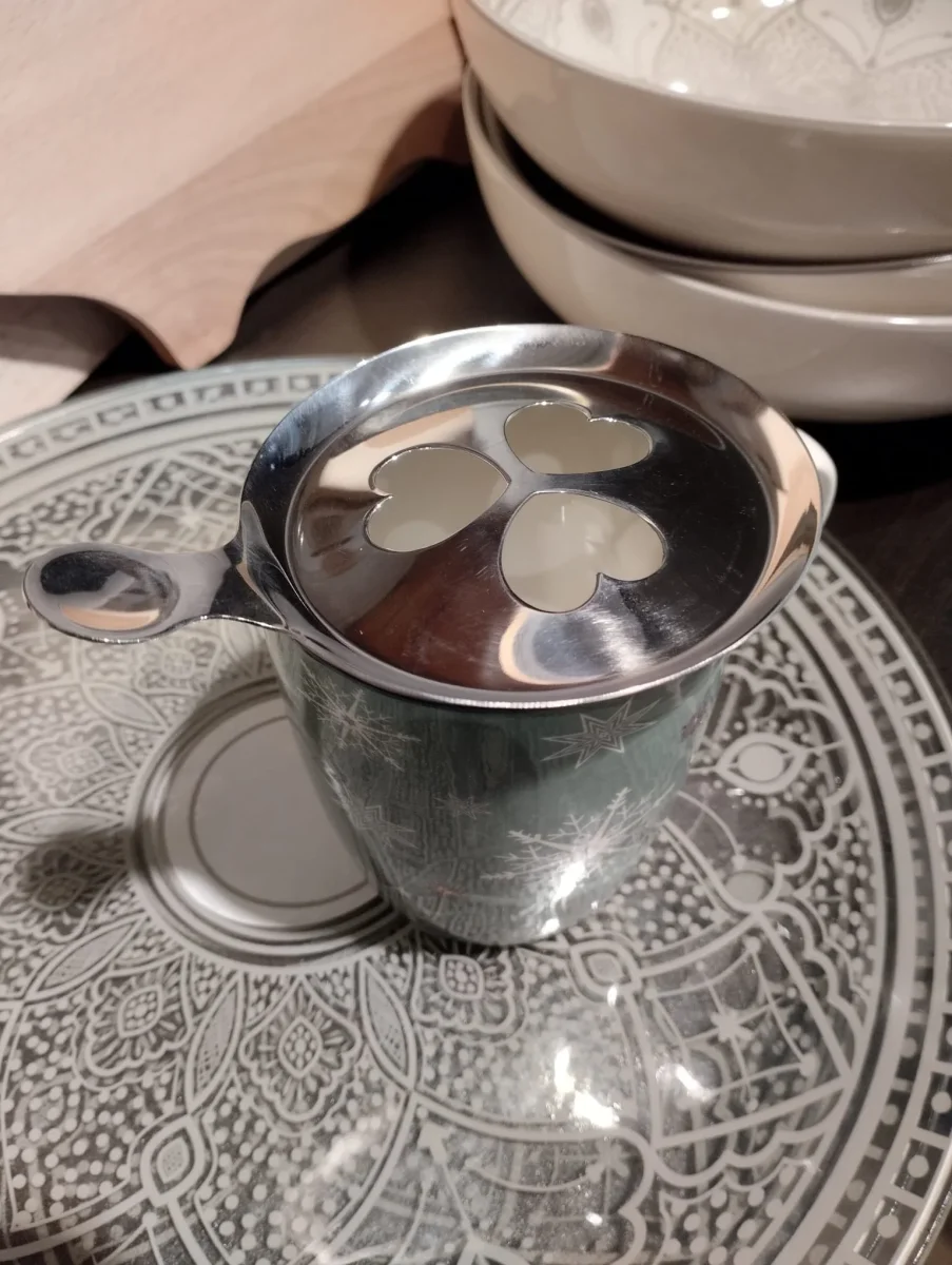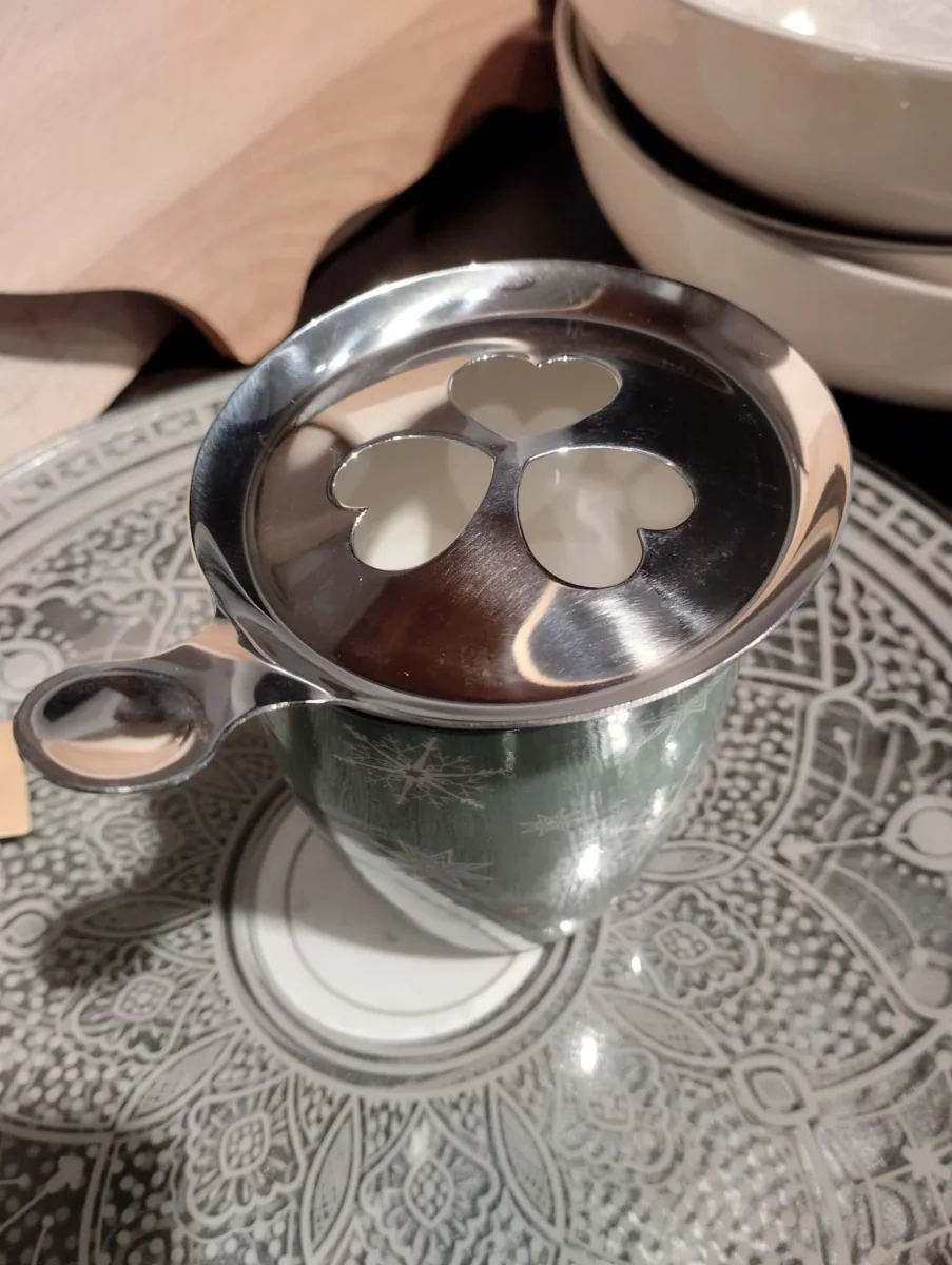 Kaffestenciler kommer i en befintlig formstorlek på 95 x 85 mm. Detta rostfria stålmaterialet garanterar både hållbarhet och en lätt att rengöra yta, vilket gör att den behåller sin polerade look över tiden. Storlek: Diameter 9cm ; L 12cm