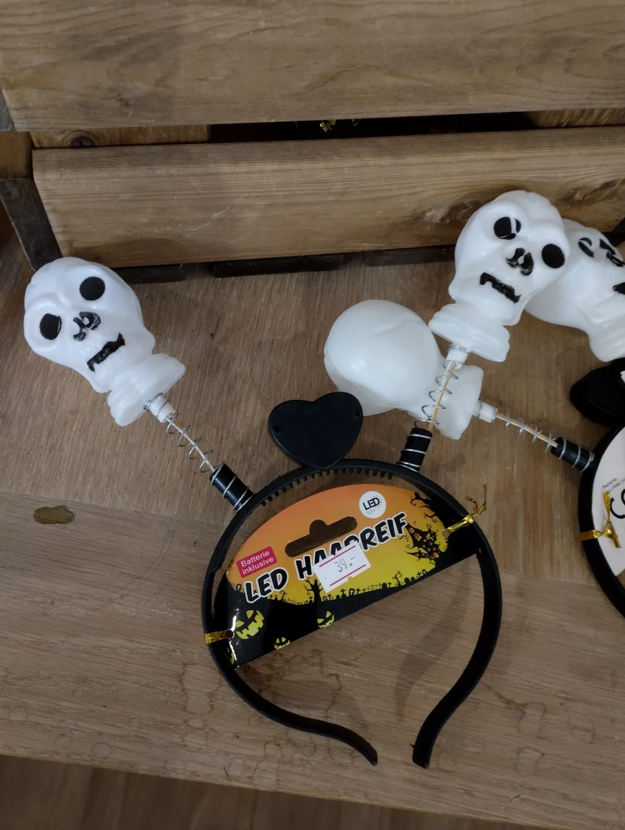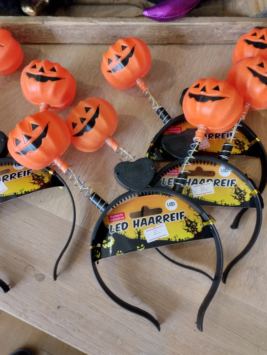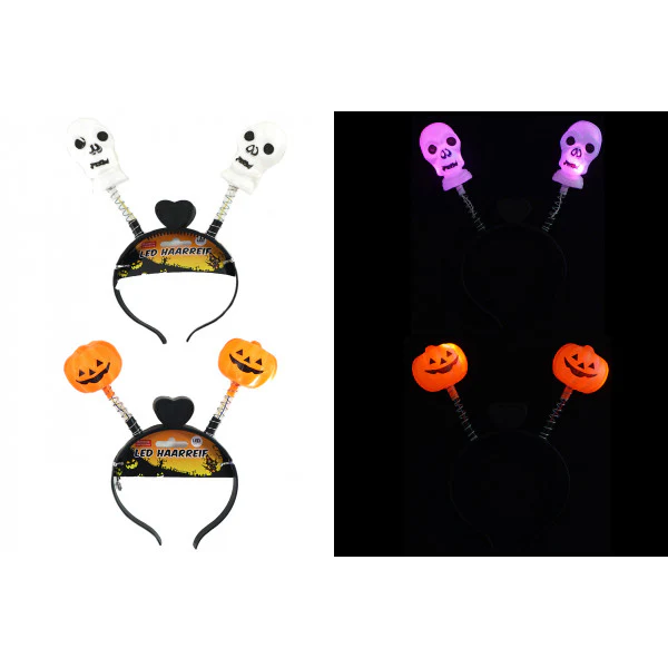 Lägg till en extra touch av spöklik glamour till din Halloween-utstyrsel med vårt LED-hårband ”Pumpa & Döskalle”. Med två lysande LED-lampor och en kreativ design är detta hårband det perfekta tillbehöret för att få dig att sticka ut på varje Halloween-fest.