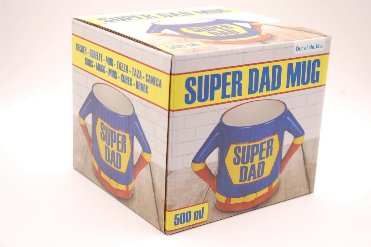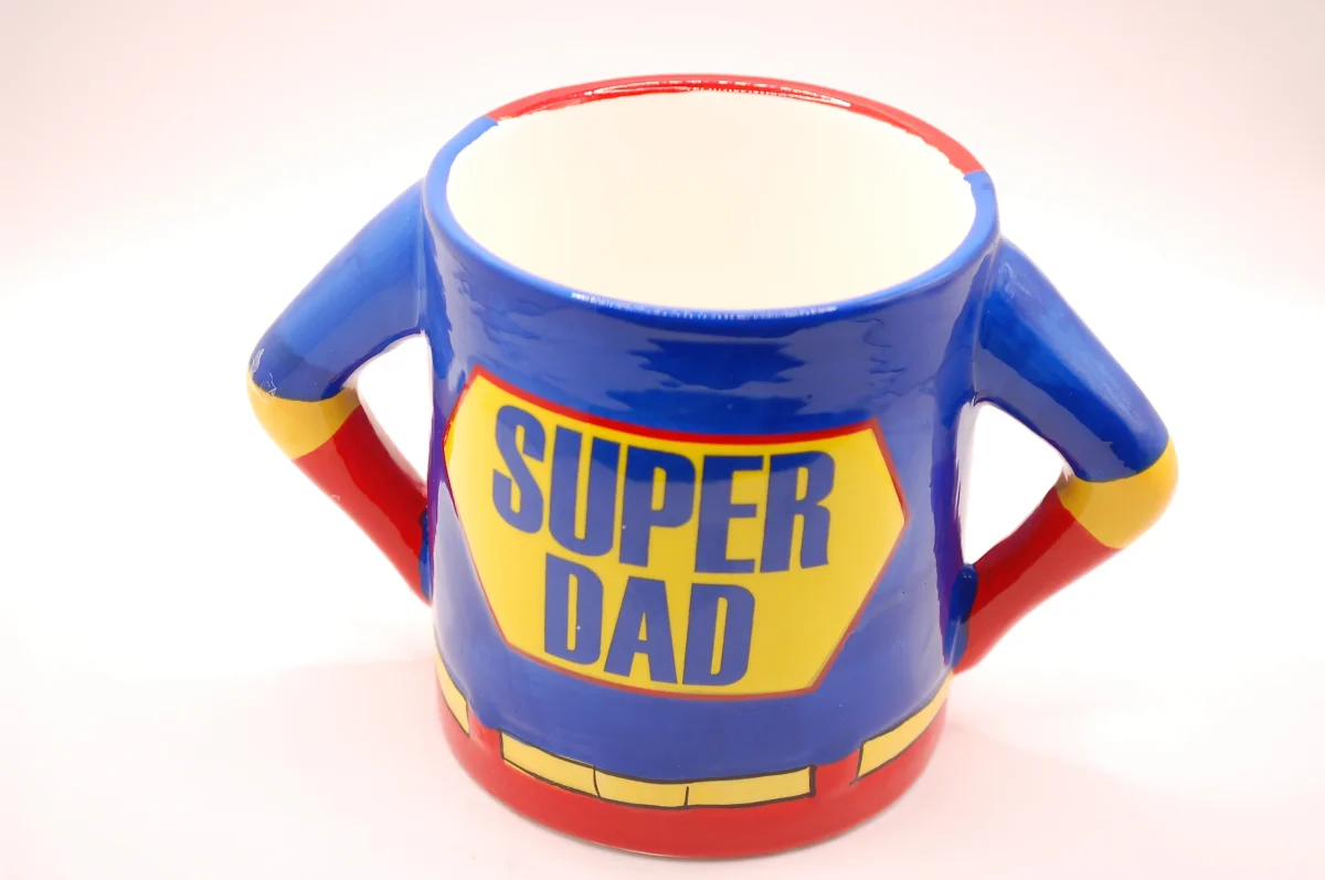 Pappor är sanna superhjältar! För att hedra din pappa har vi den perfekta muggen som passar just han! Super Dad-muggen av stengods är den perfekta presenten för din pappas födelsedag eller Fars dag.