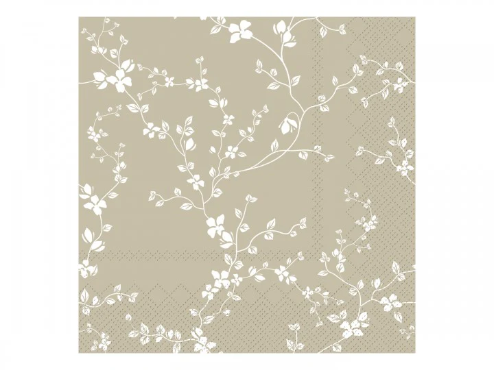 Pappersservetter – Beige – Med Blommor – 3-lags, 33x33cm