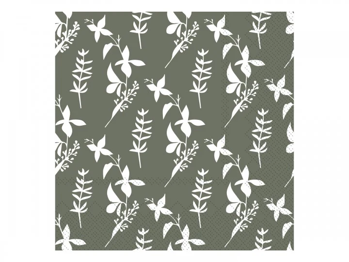 Pappersservetter Grön/Vita Blommor 3-lags, 33x33cm