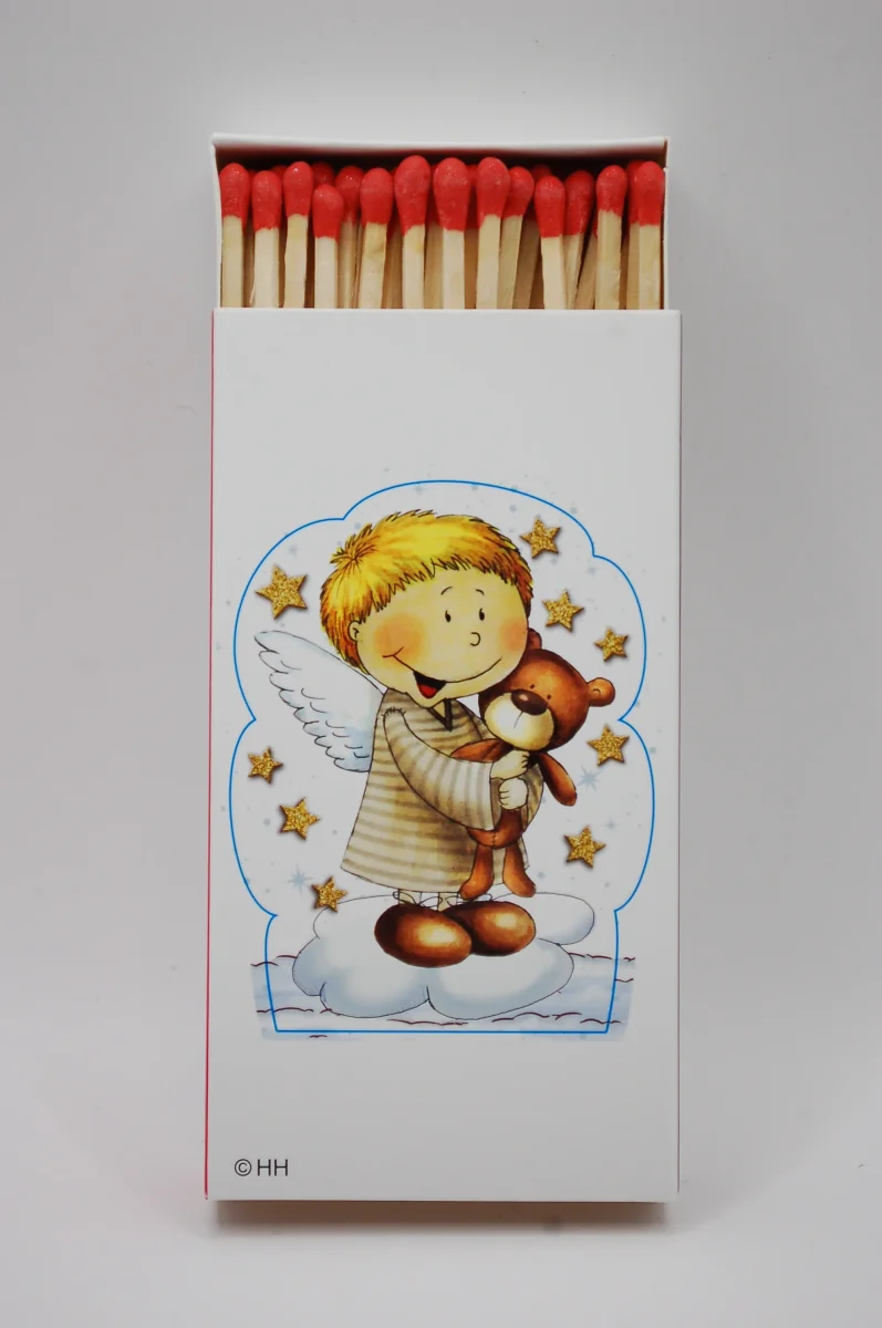 Tändsticksask XL- Ängel + Nalle – 50 tändstickor