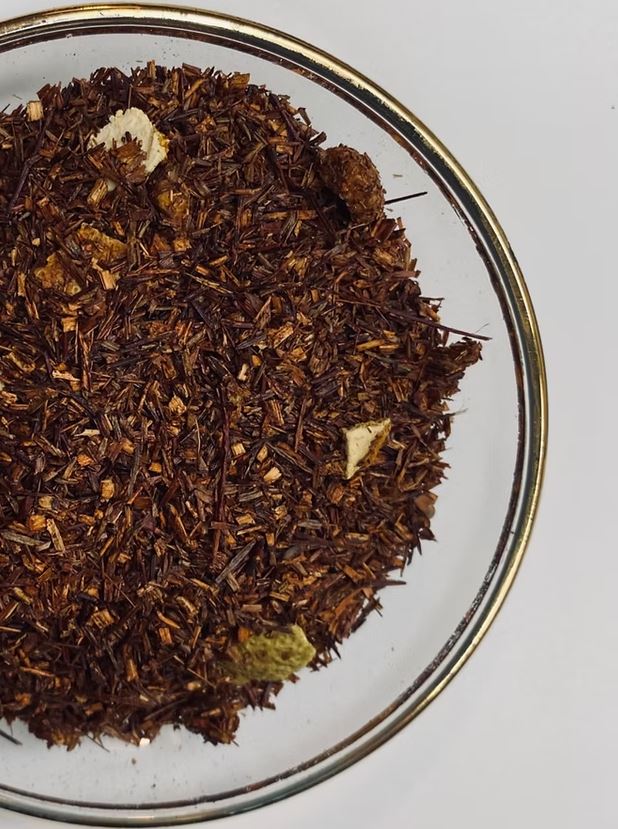 Rooibos (Sydafrika), apelsinskal, apelsingranulat, maracujagranulat, naturligt baserad smakarom